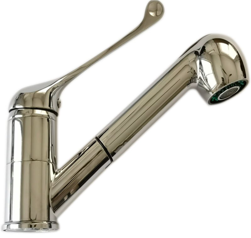 Fabriqué en laiton durable et doté d'une élégante finition chromée, ce robinet allie élégance et durabilité. Le bec extractible avec fonction douche rend la vaisselle et le nettoyage plus faciles que jamais, tandis que la poignée extra-longue offre un confort d'utilisation supplémentaire, idéal pour les foyers où l'hygiène est primordiale.