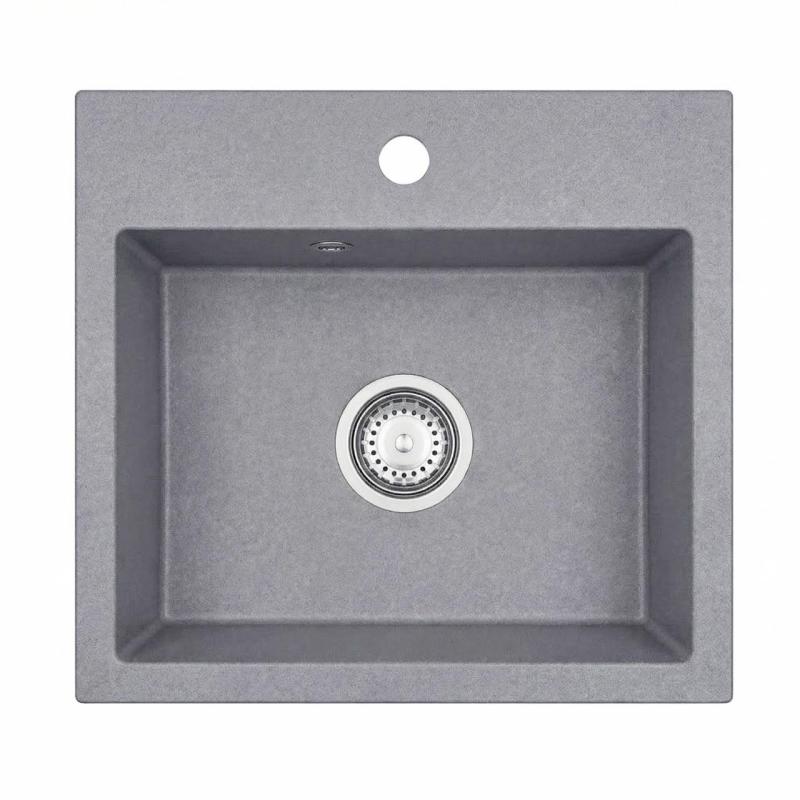 Graniteland Nera Evier en Granit 45x42 cm Gris Montage sur Plan avec Trou pour Robinetterie et Bouchon Inox 1208971436