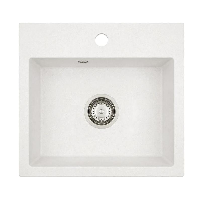 Graniteland Nera Évier en granit 45x42 cm Blanc Installation en surface avec trou pour robinet et bouchon en inox 1208971435
