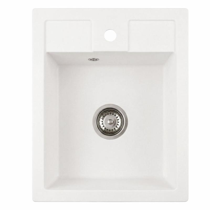 Graniteland Prest Évier en granit blanc Tapwing avec trou pour robinet en surface 400x500mm avec bouchon en inox 1208971424
