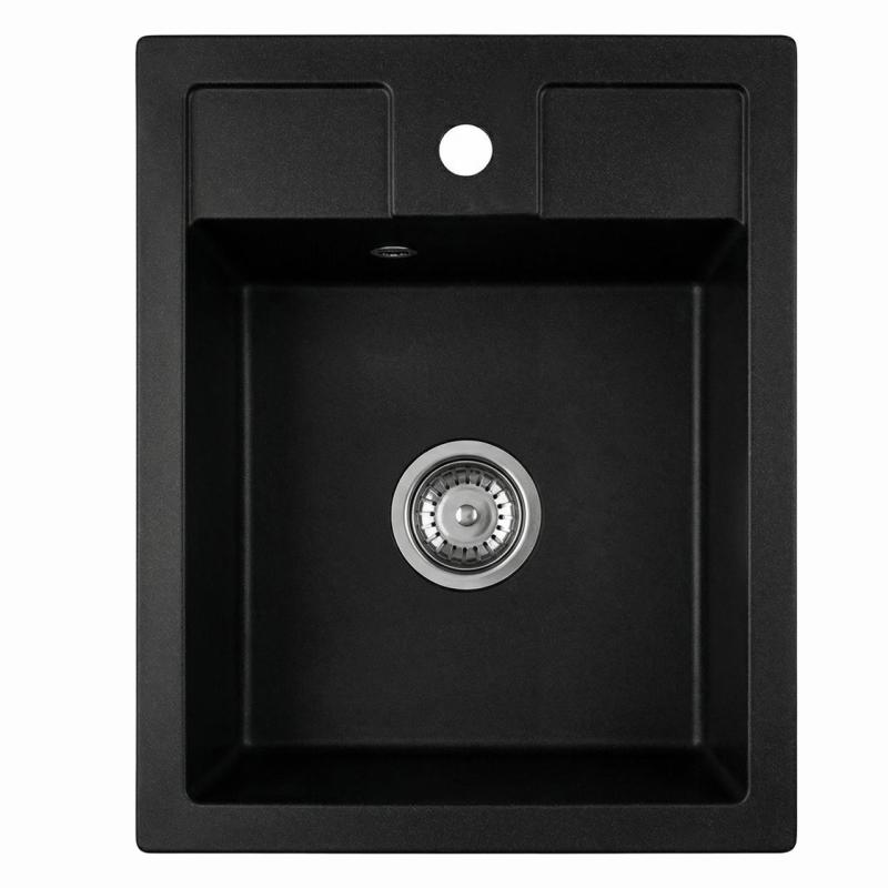 Graniteland Prest Évier en granit noir Tapwing avec trou pour robinet encastrable 400x500mm avec Plug en inox 1208971421